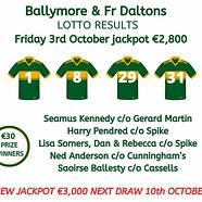 Fr. Daltons/Ballymore Gaa Lotto results 26th of September Jackpot €2,600. No Outright Winner. ...