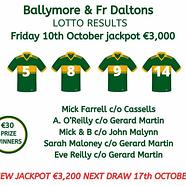 Fr. Daltons/Ballymore GAA Lotto Results 10th of October 2025. No outright Winner, next Jackpot...